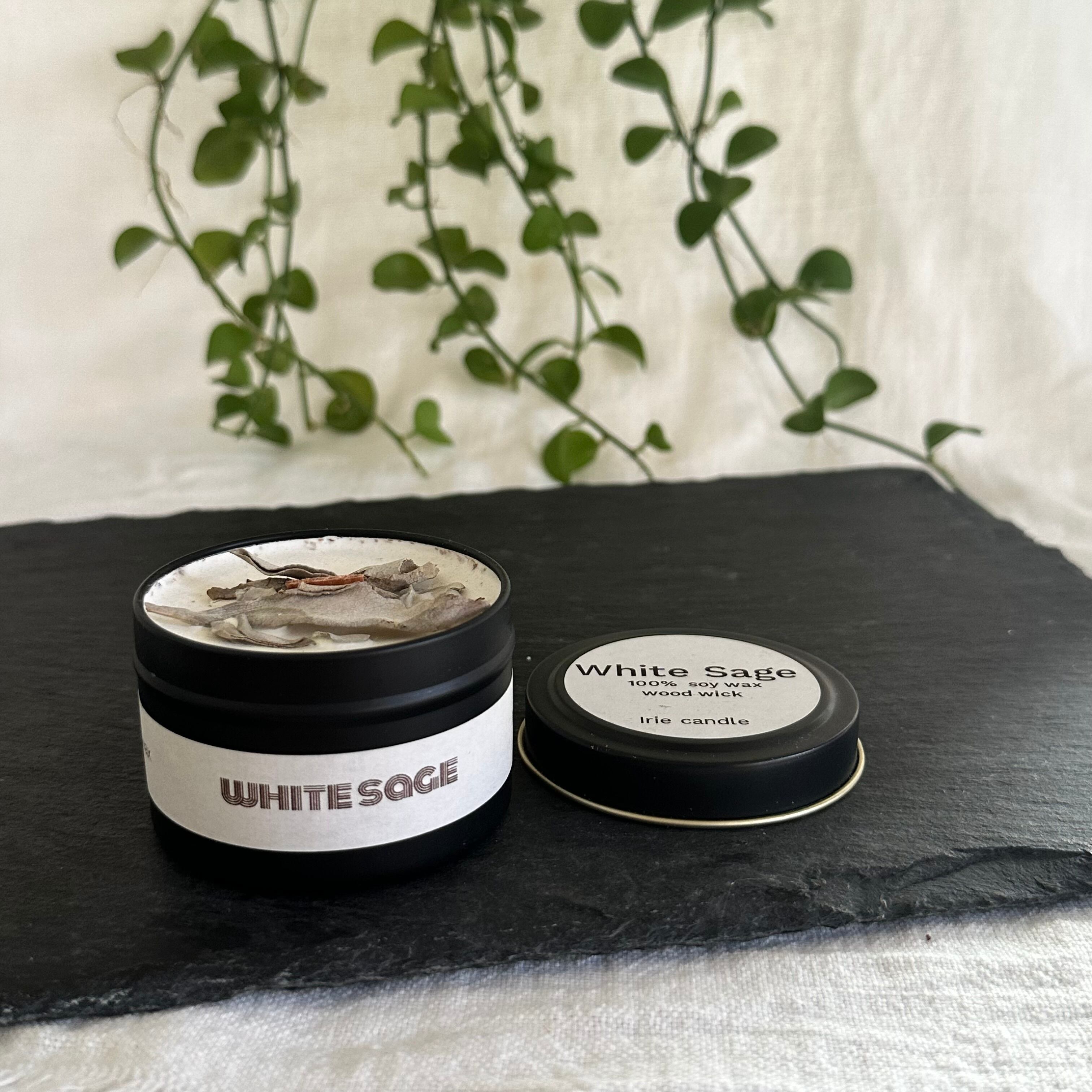 ホワイトセージは直接火をつけて使うのが一般的ですが、Irie candleでソイワックスにホワイトセージを染み込ませ素材の力を存分に引き出しキャンドルに仕上げております。